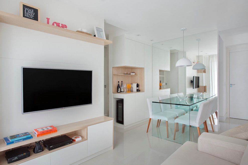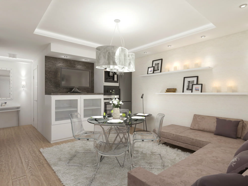 If several people live in the apartment, the living room becomes a gathering place for all family members. It is necessary to equip it so that there is enough space for everyone: a sofa, mobile chairs will do. In many families, it is better to use multifunctional furniture. Sometimes the living room plays the role of a dining room and a bedroom at the same time, then the bar counter becomes a dining table, and a folding sofa becomes a bed.