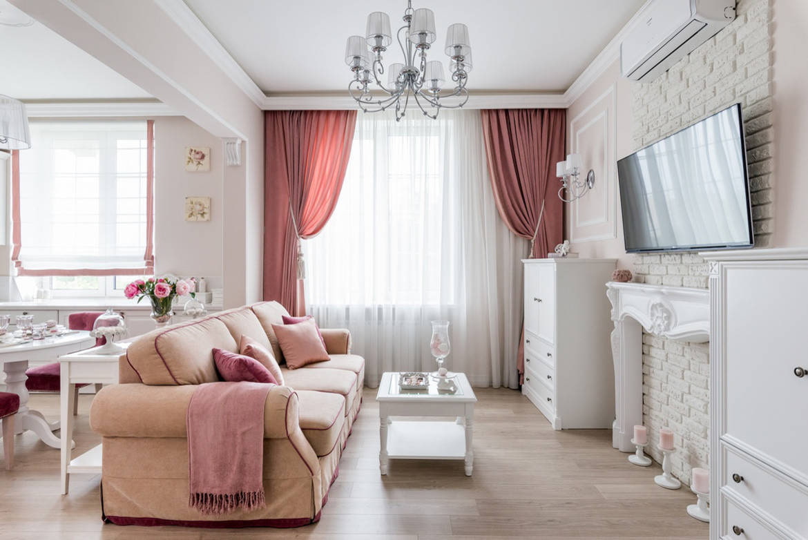 In contrast to the previous style, Provence in an apartment of 60 sq. meters brings decor to the fore, not functionality. The design actively uses antique carved furniture, pastel colors and floral patterns.