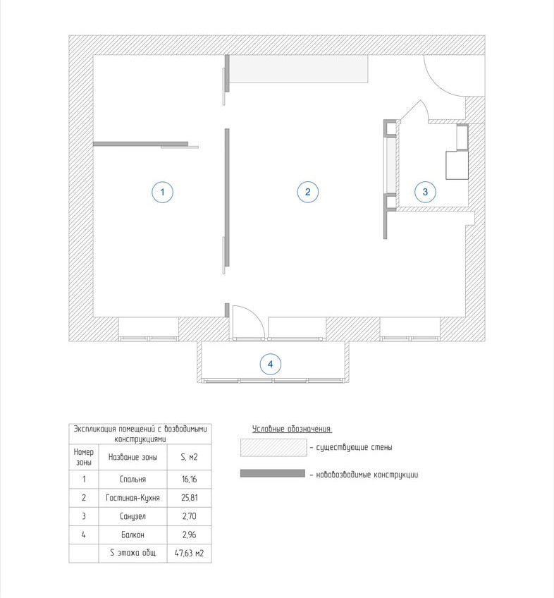 The redevelopment of the apartment in Khrushchev had to start with the demolition of those parts of the walls that were not load-bearing. Only those walls that were in the bathroom, in its "wet zone", were not touched. In addition, during the redevelopment of the Khrushchev, an additional wall was erected in the bedroom, fencing off a place for the dressing room. This avoided cluttering up the space with separate storage systems. The dressing room has two entrances - from the bedroom and from the living room, which is very convenient.