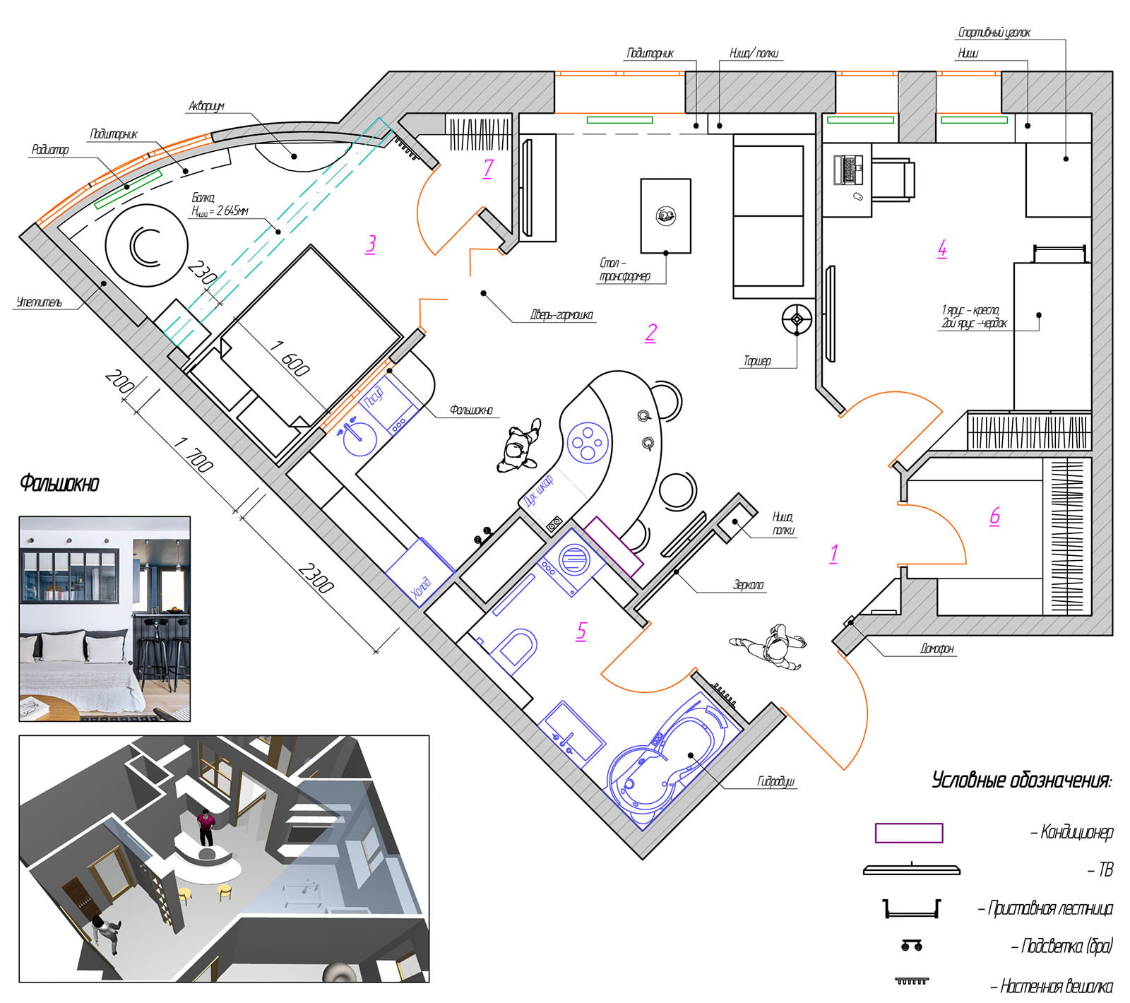 The apartment has all the zones necessary for a comfortable life: a bedroom, a living room, a kitchen, and a children's room.