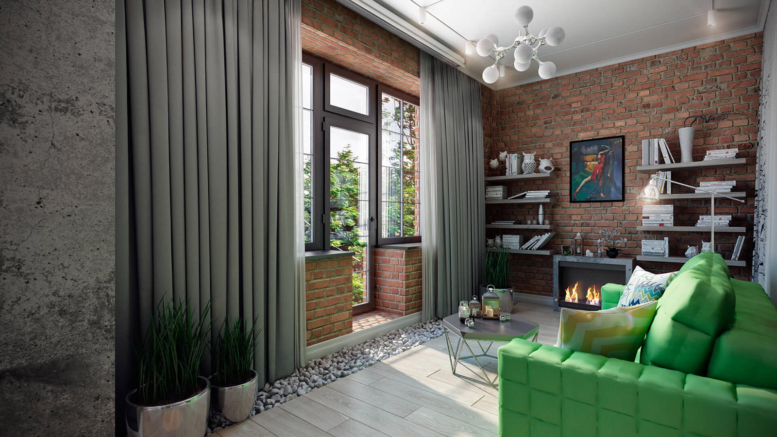 Much attention is paid to color, as well as texture, in the design of the apartment. Against the background of a strictly combination of white, gray and black, a bright pair of green-yellow stands out with juicy accents. They are present in every room, thereby giving integrity to the interior.