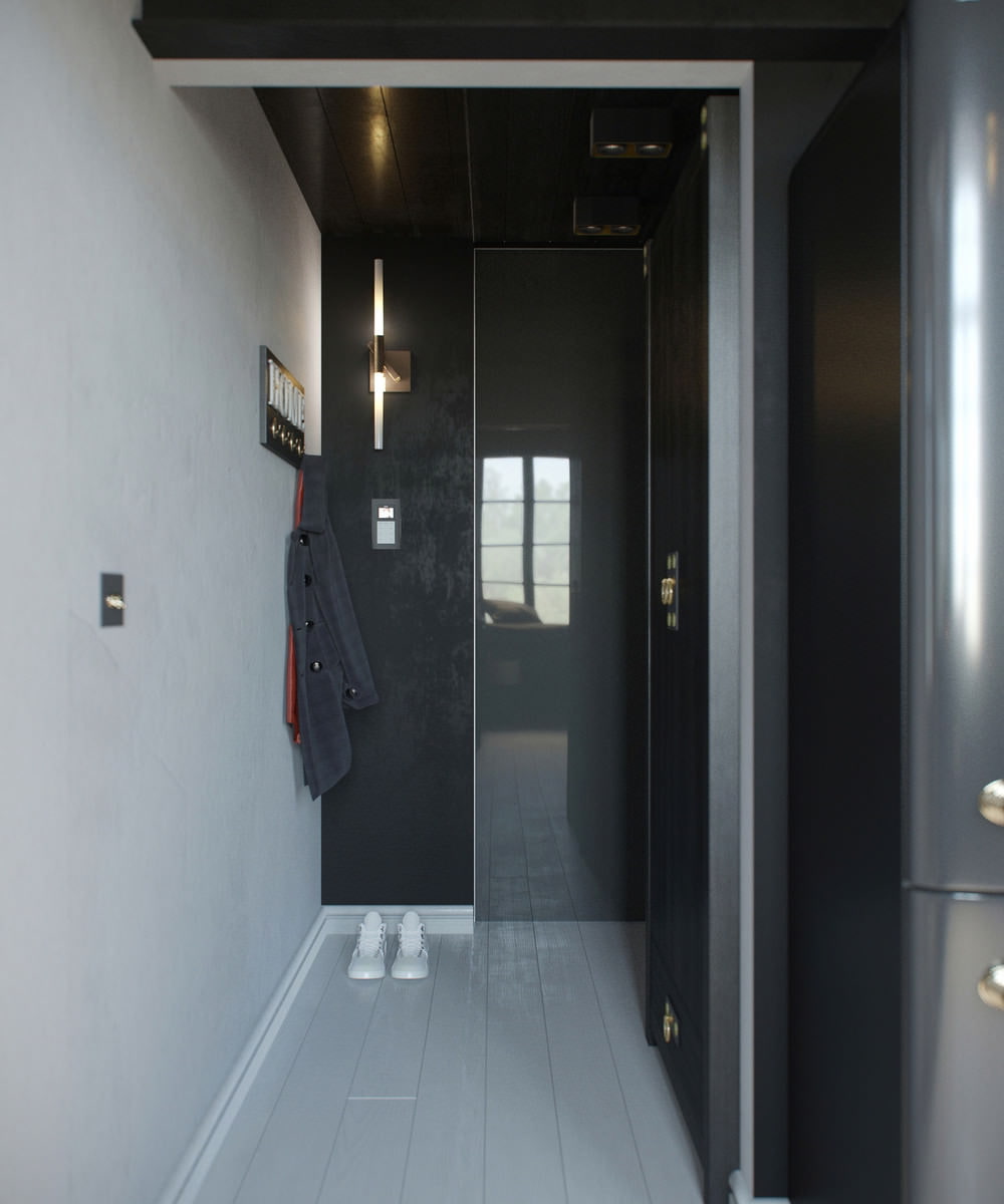 Usually, for small apartments, white is chosen as the main color - it allows you to visually expand the space. In this case, the author of the project, Tatyana Shishkina, decided that black would become the main one - and she was right. Black color erases the boundaries between volumes, due to which the studio does not look broken into separate "pieces", but looks whole and harmonious.