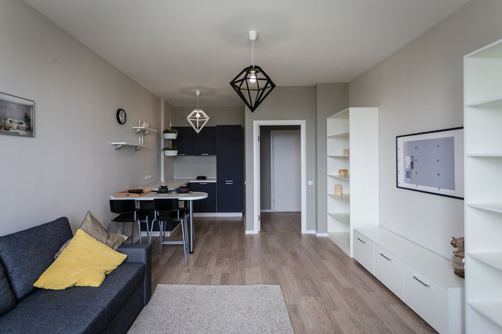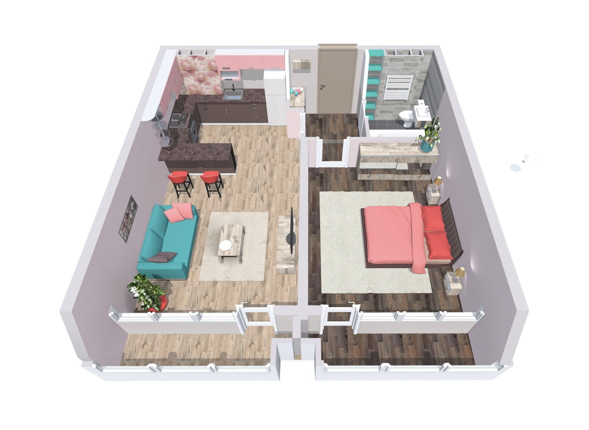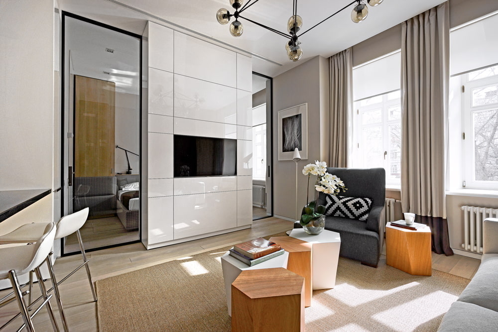 - Freedom in interior design... It is more convenient to equip one large room in a euro-apartment with different functionalities than two tiny ones separately. Come into play zoning techniquesthat can liven up any design.
