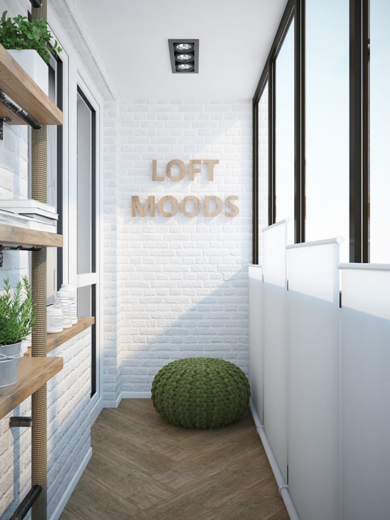 The designers turned the fire escape on the loggia into a modern open rack where you can store things or arrange flower pots.