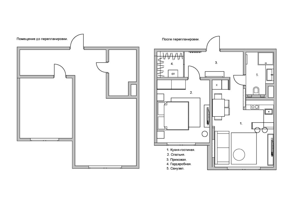 The selection of furniture for the interior of a small apartment did not cause any particular difficulties: the style of the loft and "Scandinavia" presupposes a large selection of forms and materials, the limitations were only in terms of budget and visual perception: in a small room, bulky pieces of furniture are unacceptable, because of them the space seems cramped, cluttered , and the designers wanted to maintain a sense of space and freedom.