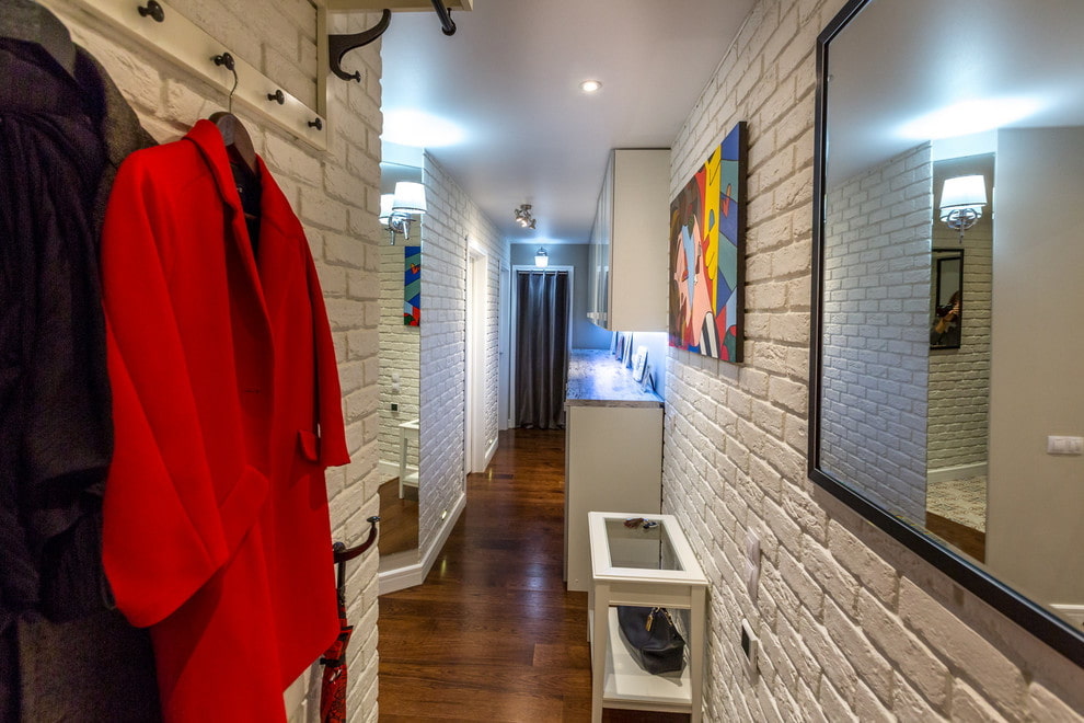 The area of the bathroom was increased due to the corridor. The interior is thought out to the smallest detail: every centimeter is involved in the bathroom.