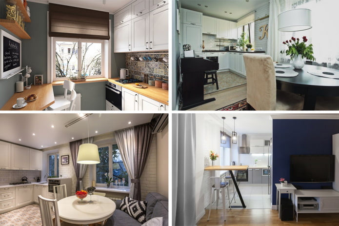 The area of the apartment is 40 sq.m., the owners are a young couple. Budget - RUB 800... Designer Marina Merenkova did not change the layout, but arranged the small kitchen so that there was enough space for everything you need. Her main feature - table top headset, passing into the window silland then to the dining table.