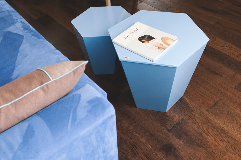 The tables from Kare Design are easy to use and practical: one of them is equipped with a hinged lid. You can store things there or hide a second table.
