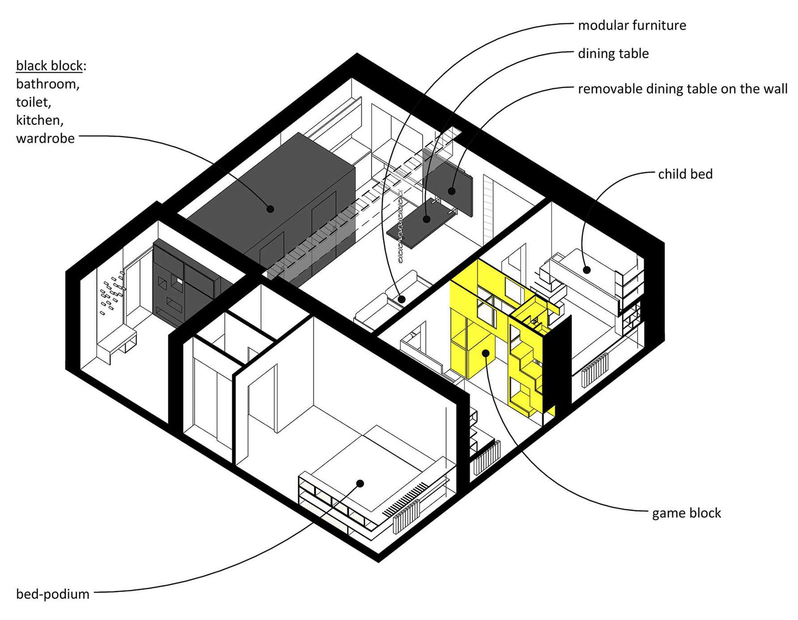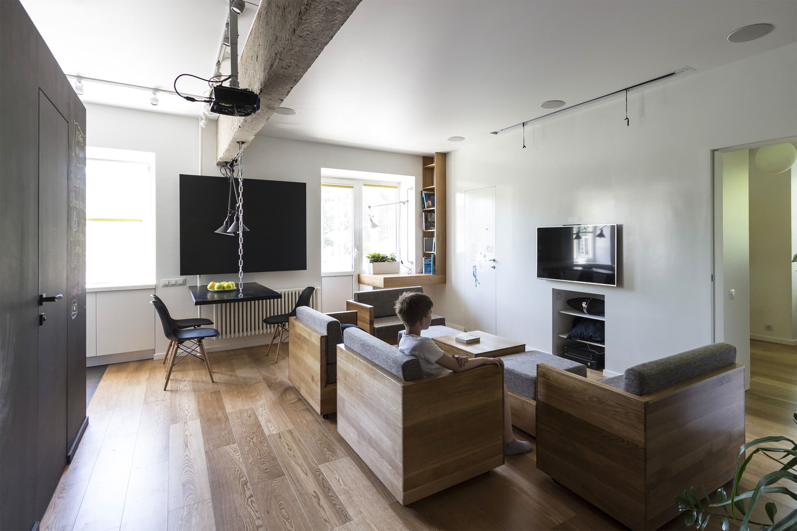In order to be able to have a good rest and receive guests, and to create conditions for the harmonious development of children, it was required that the living room could change its purpose depending on the needs of the family, and the children's room, in addition to sleeping places, should become a place where children can play , develop physically and intellectually, prepare homework.