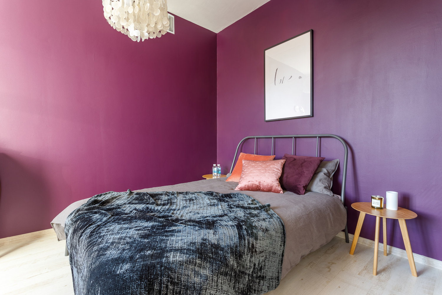 Pittsburgh Paints were used for both bedrooms. Textiles purchased at H&M Home, chandelier at Leroy Merlin.