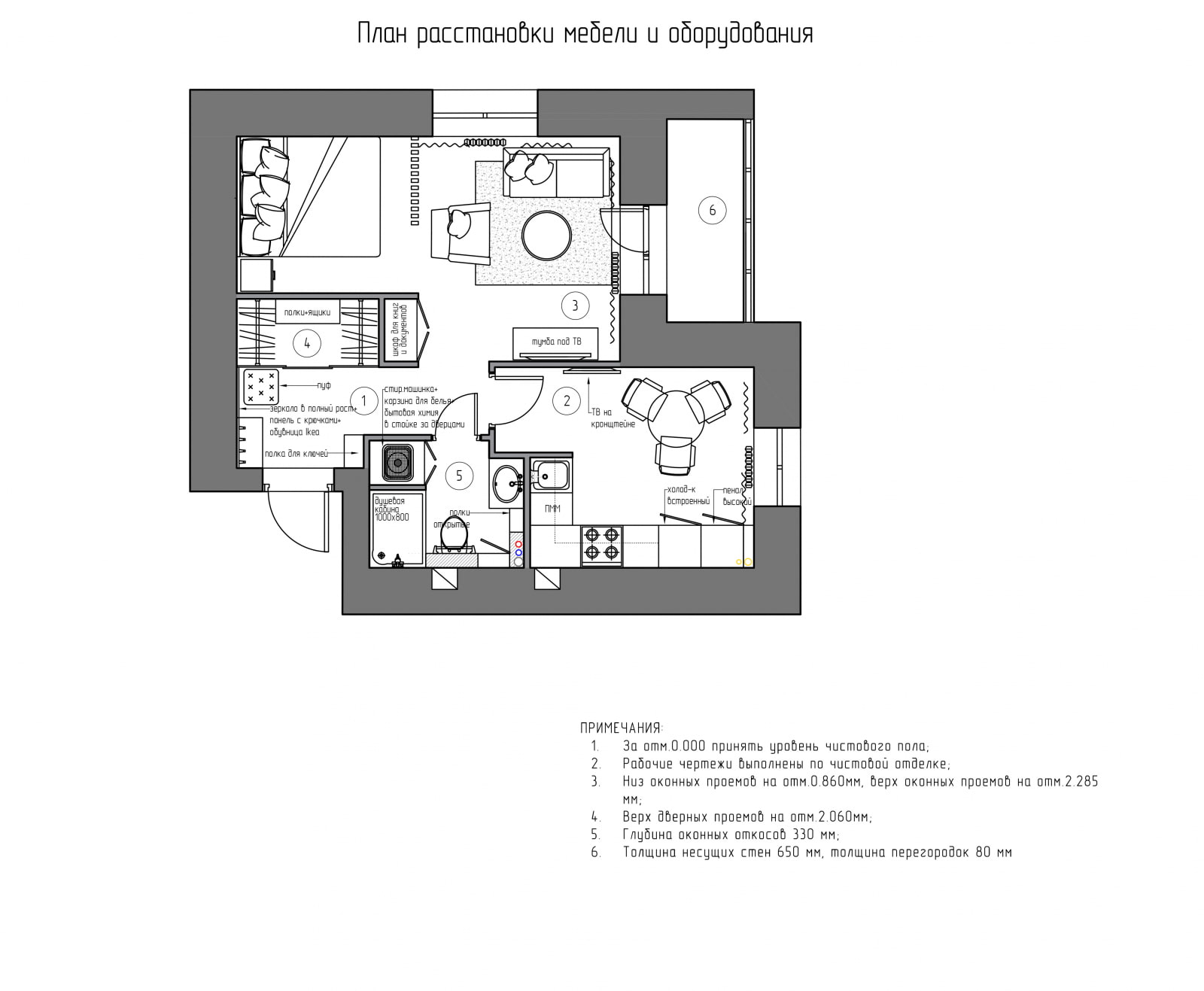 To implement the project, the partition between the hallway and the room had to be demolished. This made it possible to build in a dressing room with an entrance from the corridor. The bathroom was also enlarged and the interior door was moved. At the entrance to the living room, a free zone was formed, which was taken under the cabinet.