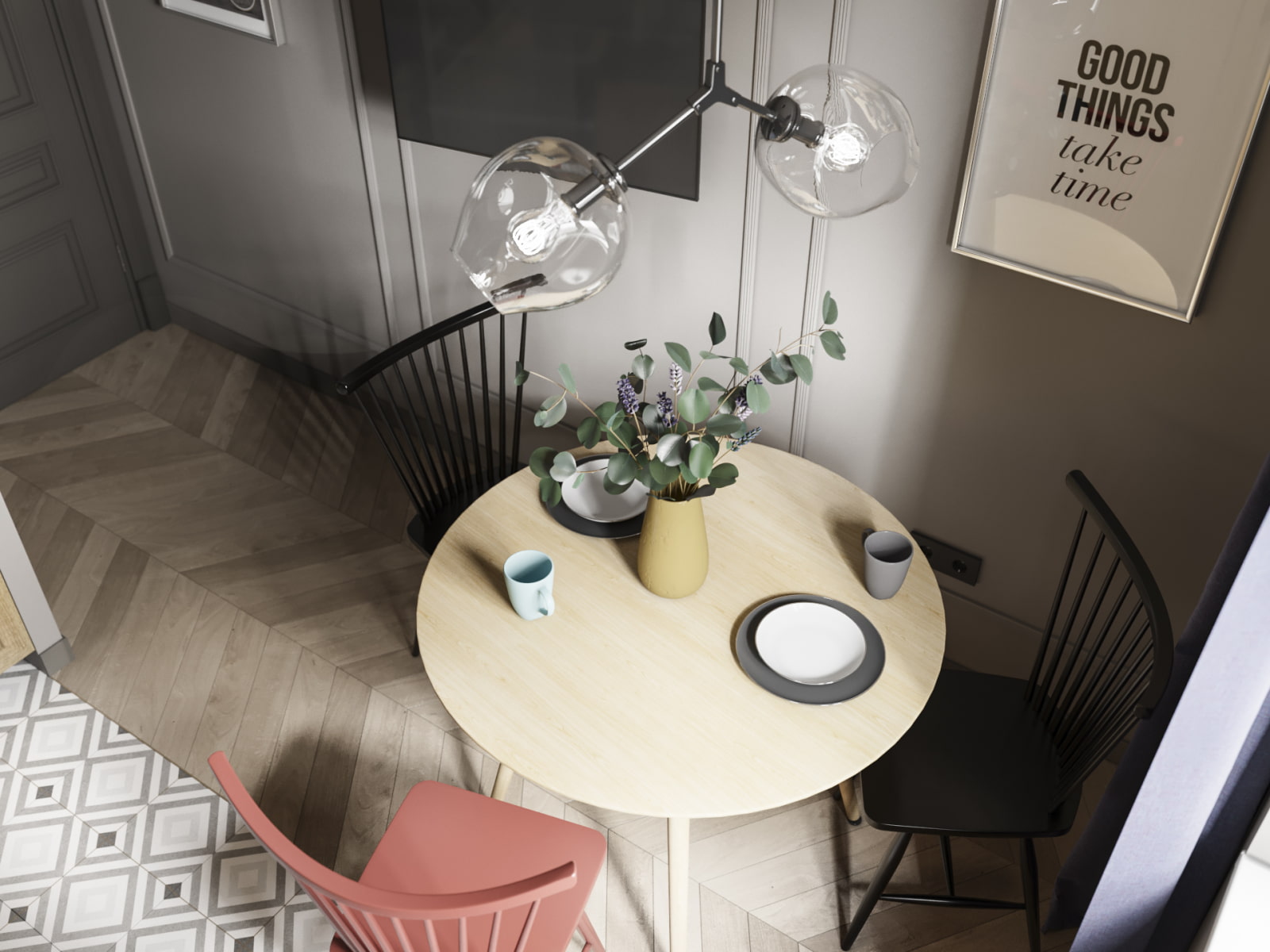 - in the kitchen dining table Cheryn, "OGOGO", chairs IKEA;