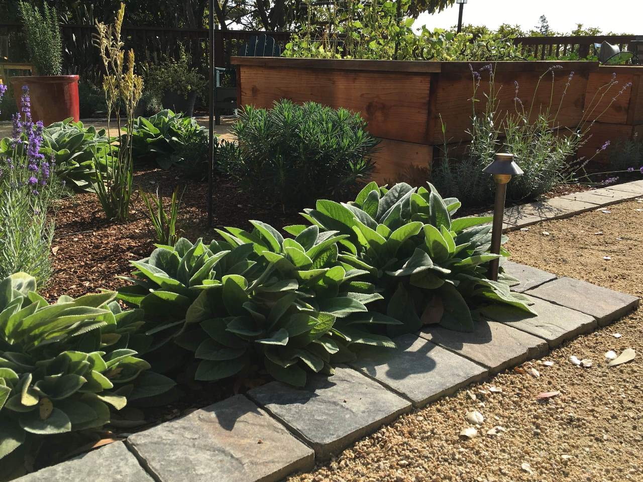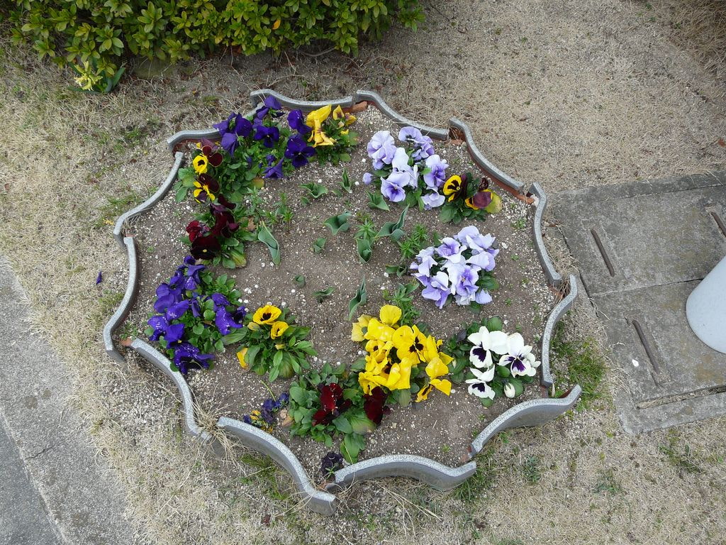 Or you can just lay out the border for the flower bed with interesting tiles, bought specifically for this or left over after repairs.