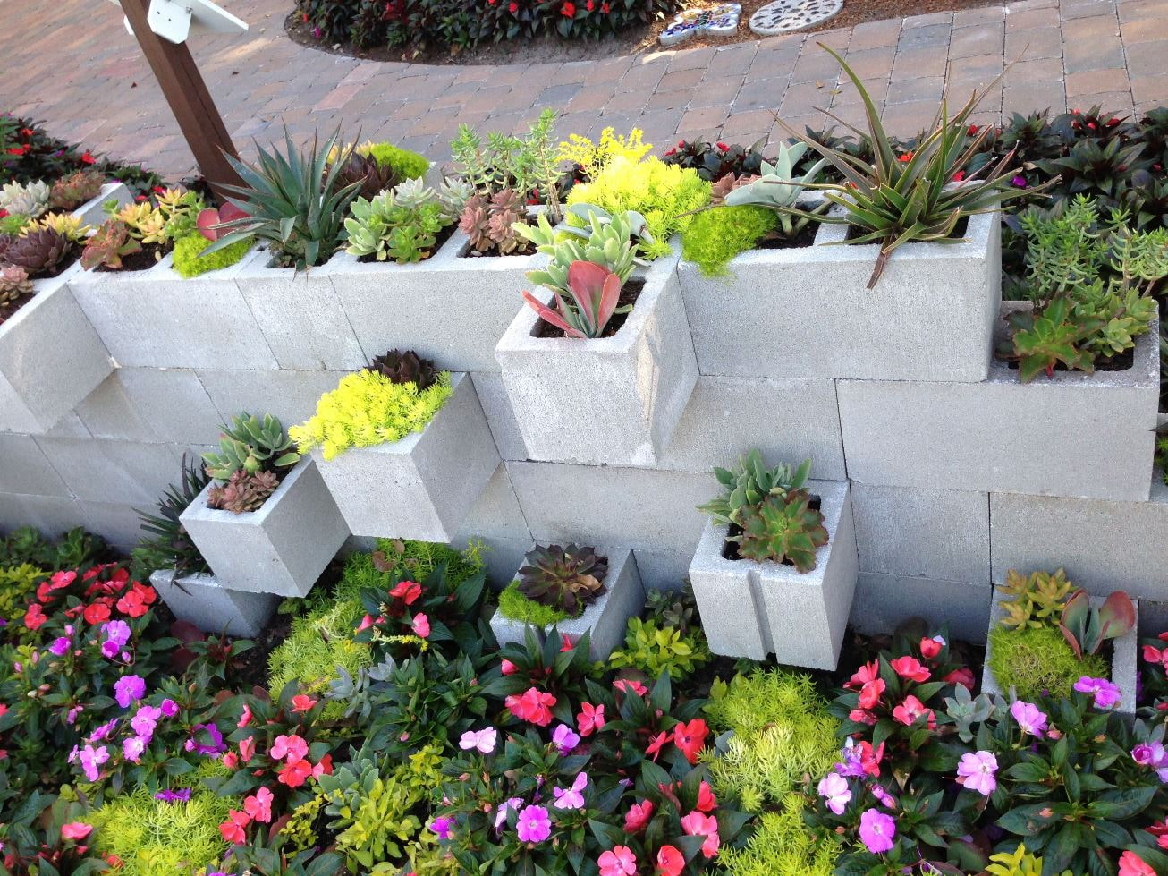 But even from ordinary rectangular blocks, you can build an original fence, making it multi-tiered, chaotic or painted in different colors. The main advantage of block borders - the ability to plant plants right inside, which looks very impressive.