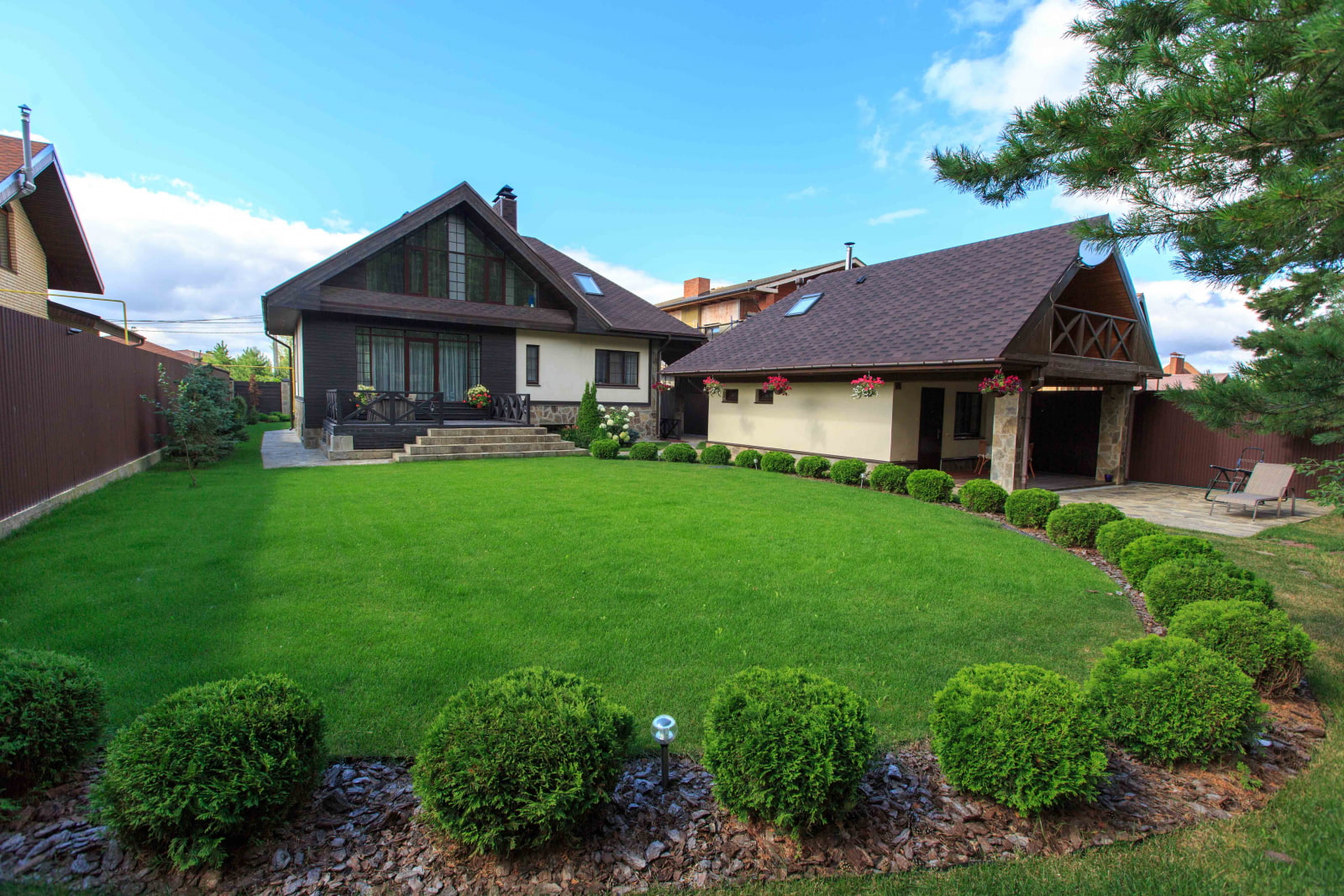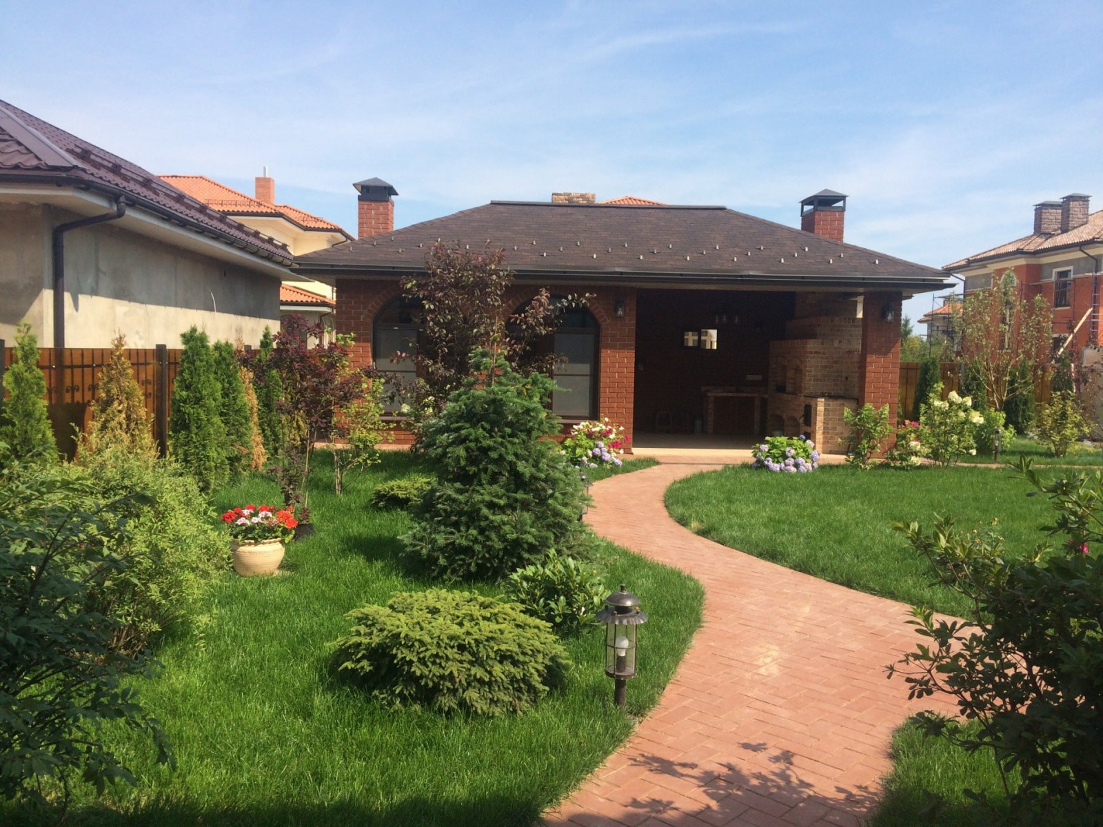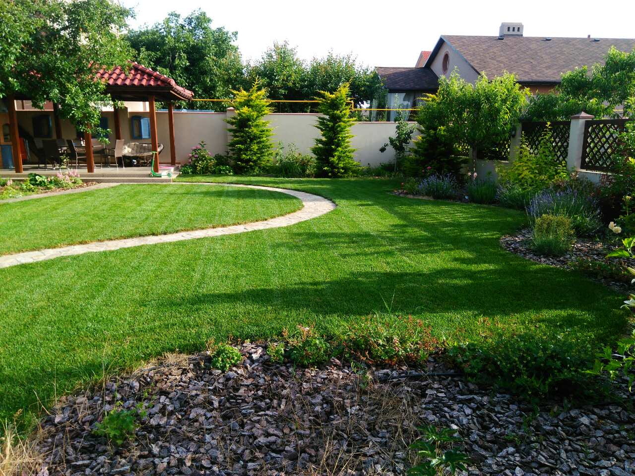 Relax zone can be completely different: it all depends on your preferences. Someone needs a small open area with a barbecue. Someone prefers a gazebo or a summer kitchen. For some, the best relaxation is on a sun lounger by the pool.