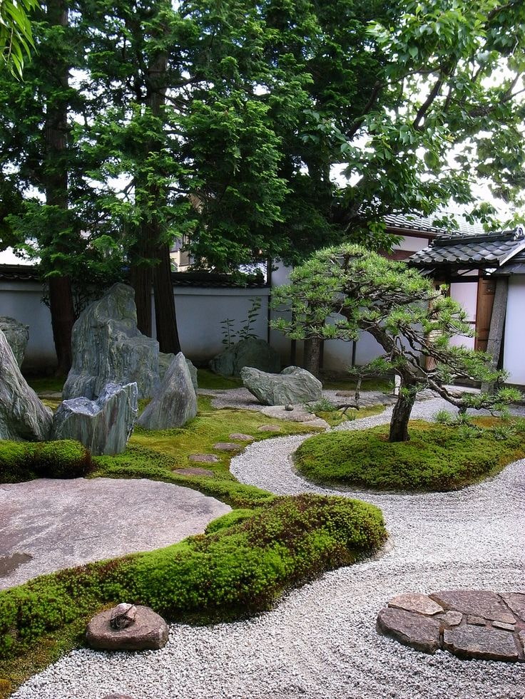 By the way, water must be mandatory: preferably in the form of a pond with aquatic plants and fish (at least artificial). Trees are either trimmed into a rounded shape or grown like a bonsai.