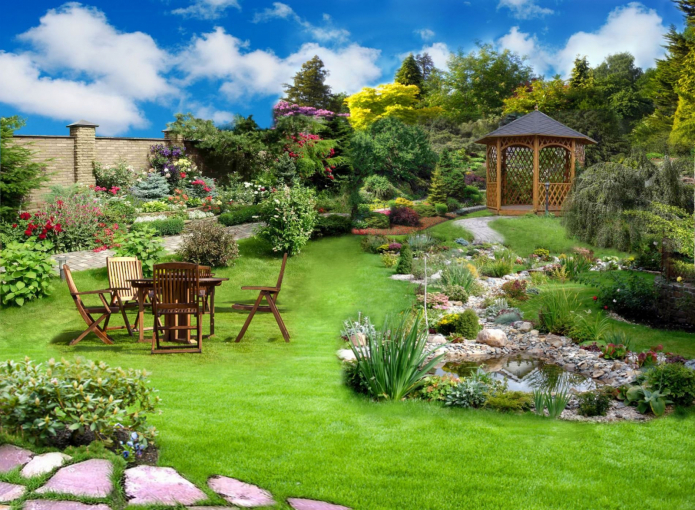 The main thing that distinguishes examples of landscape design on 10 acres from each other is style. Just like in interior design, you first need to choose a direction: it will tell you exactly what techniques to use, what plants to plant, how to decorate the site.