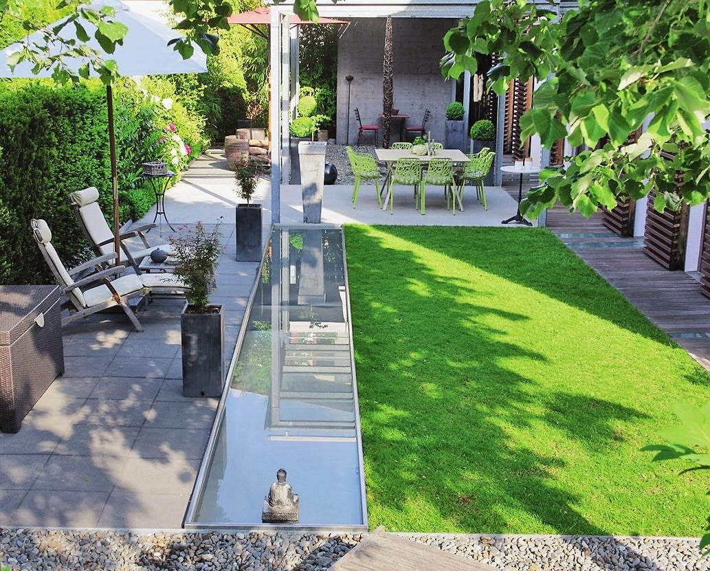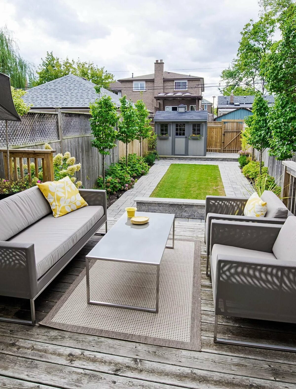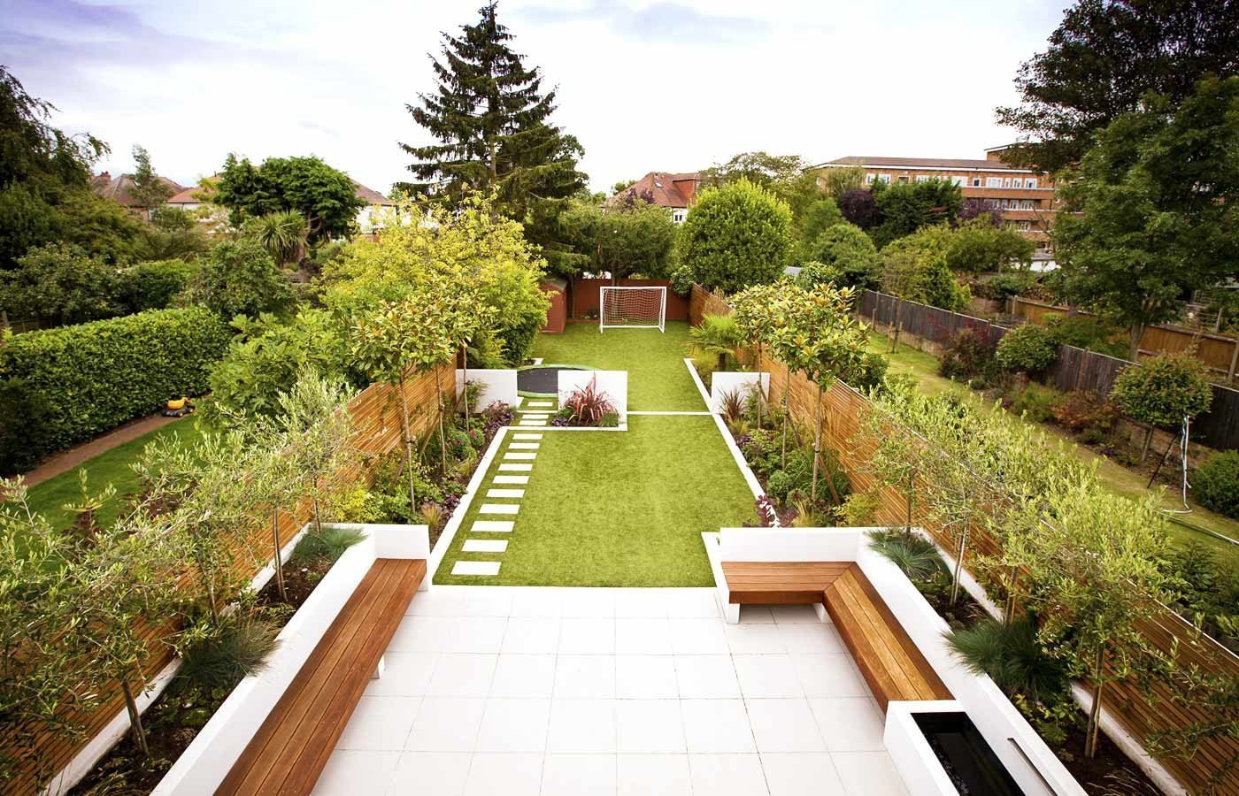 Is the house already standing? Don't be discouraged, in this case the narrow section can still be attractive. Better to divide it into two squares with a vertical hedge. The far part (near the house) is quieter and more hidden. Install a gazebo, playground, and other accessories for the recreation area in the private area. If you are going to make a pond or pool - also leave a place in this square.