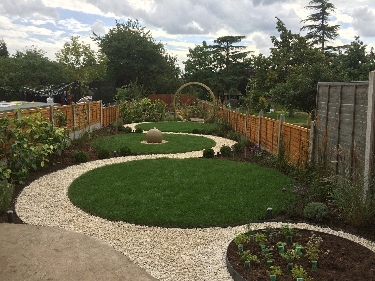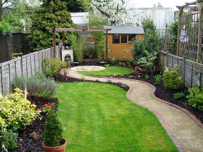 First of all, pay attention to the paths: do not apply straight paths with clear corners, make them curly. Curved lines appear longer and wider, which will have a positive effect on the geometry of the territory.