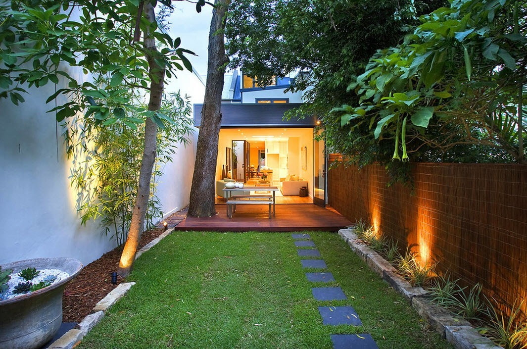 In the backyard, hidden from prying eyes, they place a patio or lounge zone, then we advise you to arrange the beds, and at the farthest wall of the narrow area there is an ideal place for a household block and wells.
