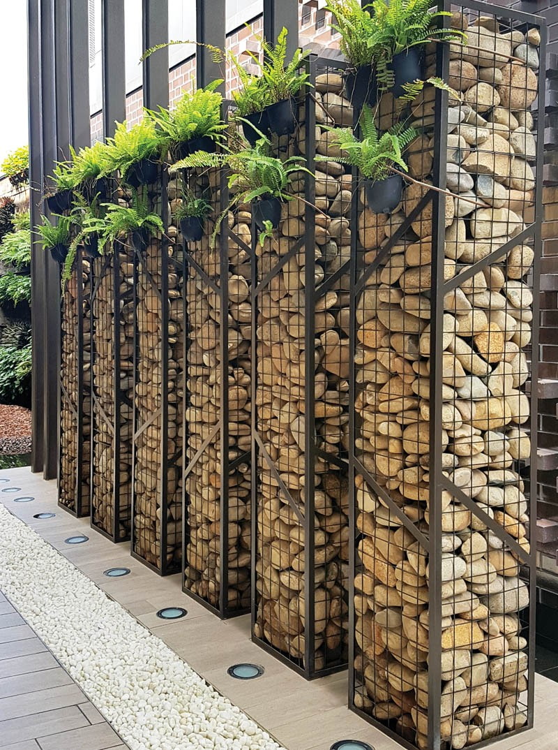 In addition to the options listed in this section, they also make gabion curbs, decorate facades, and create terraces with gabion staircases.