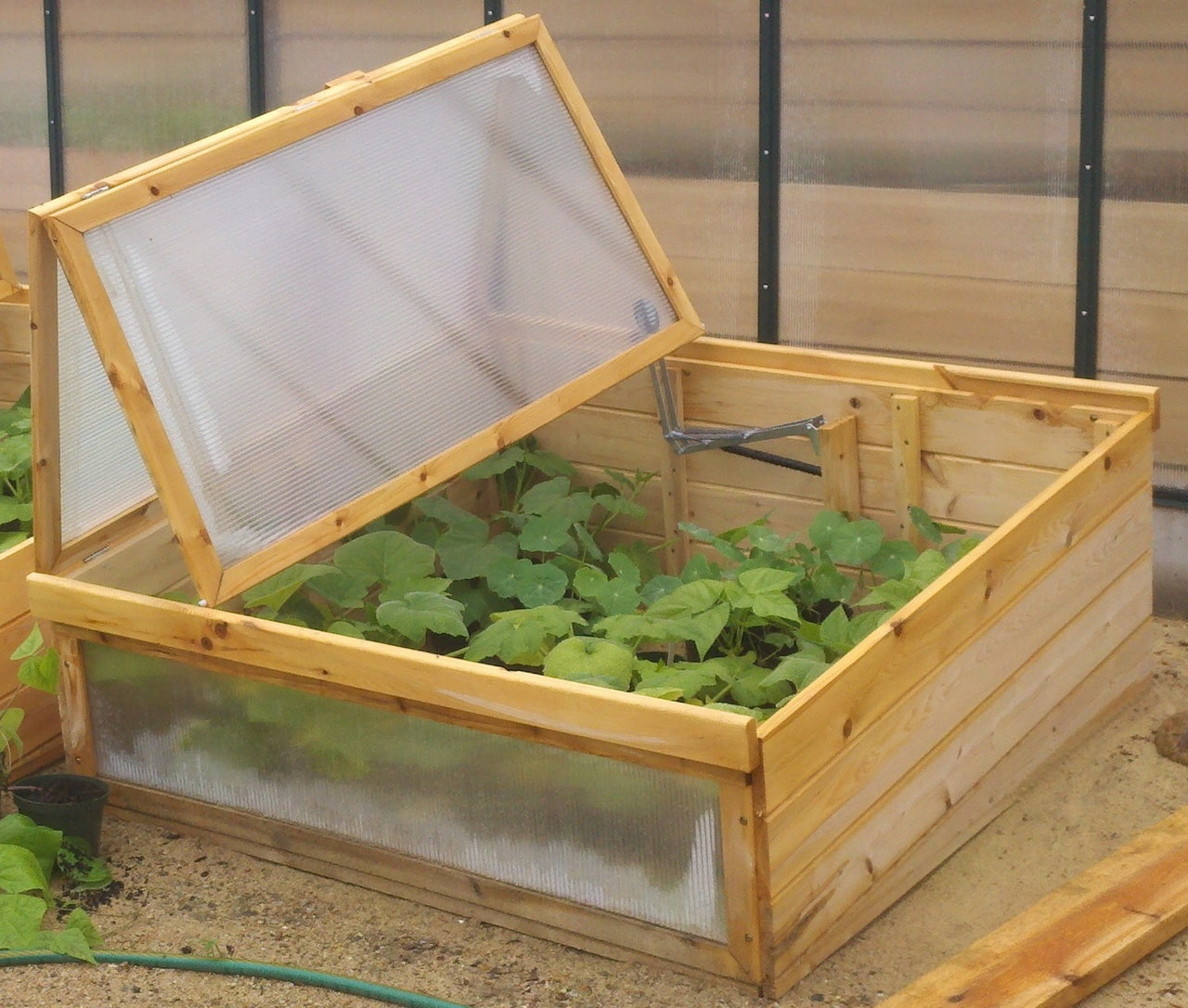 The most effective and functional are greenhouses, which, in their shape and lid lifting mechanism, resemble a container for storing bread.