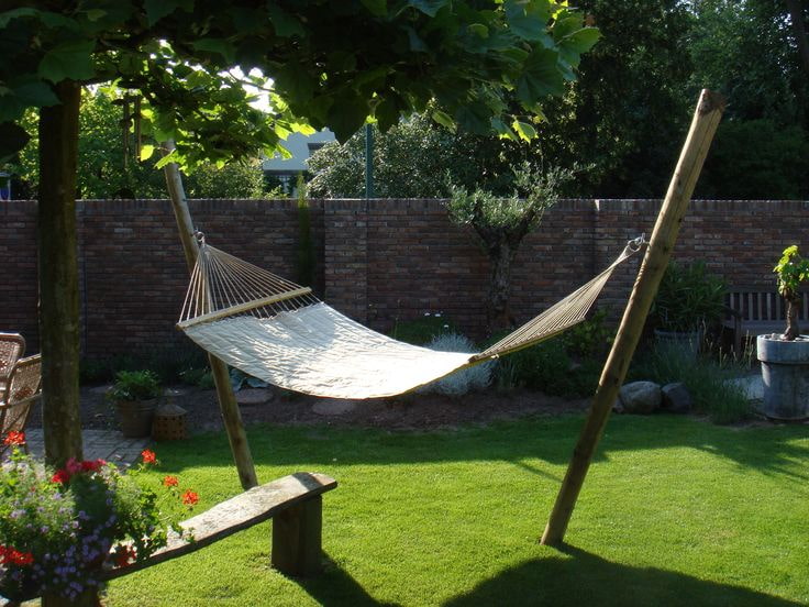 If your summer cottage has pergolas or gazebos with pillars of at least 20 cm in diameter, spaced about 3.5 m from each other, they will be ideal supports for a hammock. Roof will create a natural shadow, and will save you from the sun's rays even on the hottest day.