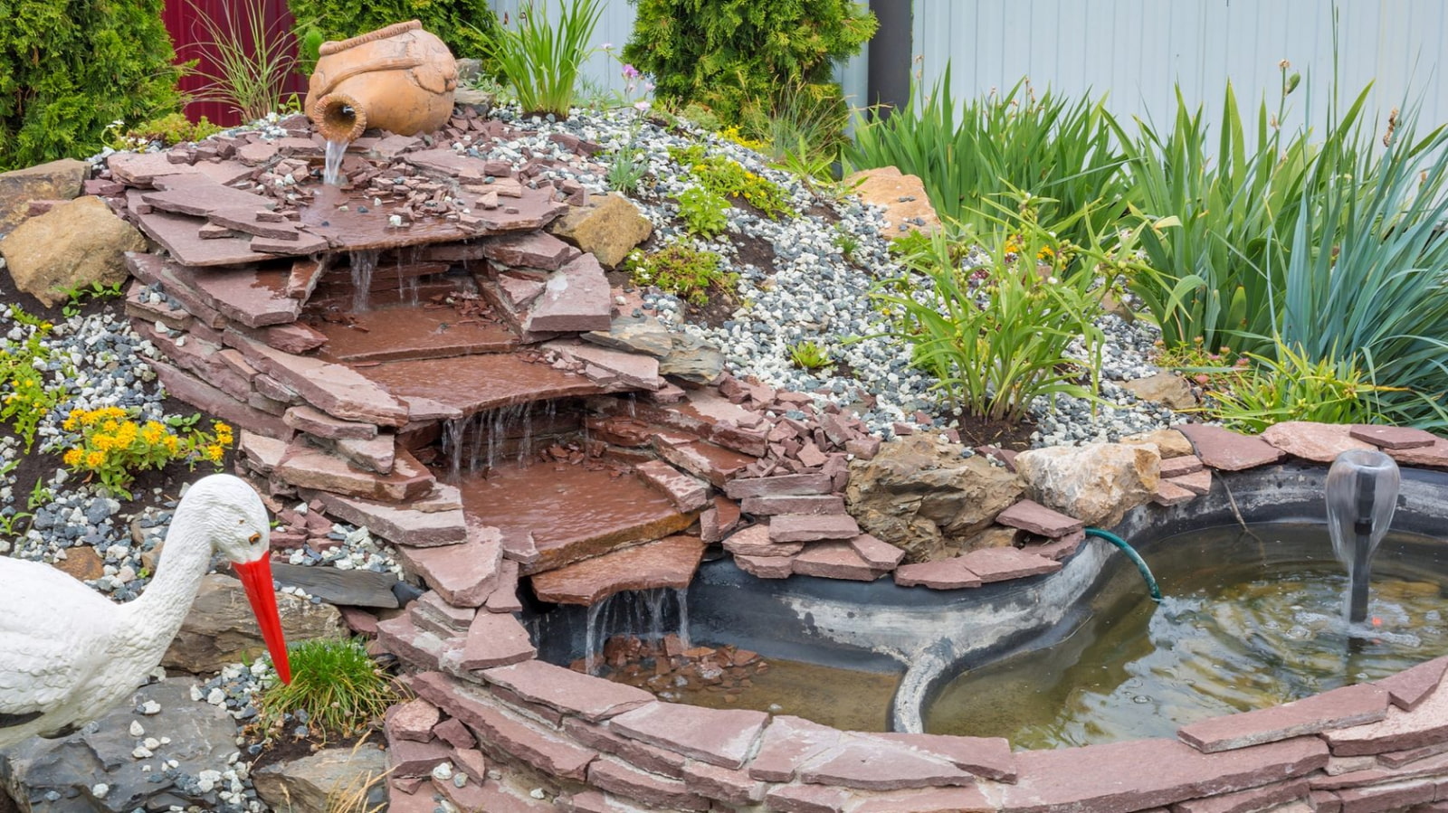 Advice! A waterfall or a fountain is made separately, combining with a flower bed or placing it in any suitable corner.