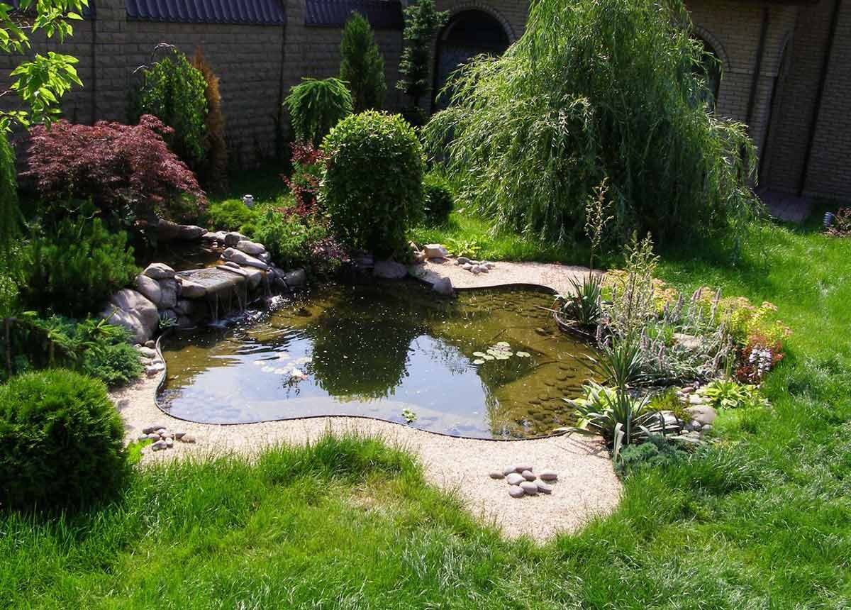 If you want to enjoy not only the view, but also the sound of the water, complement the pond with a small waterfall or fountain. You will have to purchase a pump and do the rest yourself.