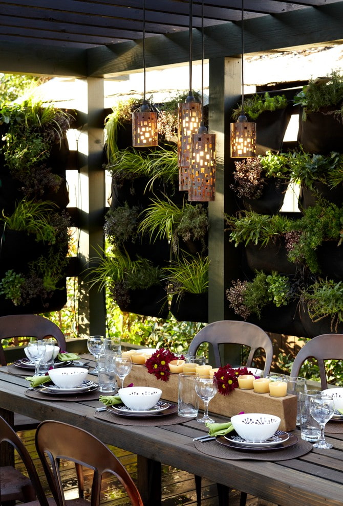 The decor can be combined with benefit: plant garden plants in tiered boxes, create vertical beds with strawberries or herbs, combining them with summer cottages with a gazebo, pergola or fence.