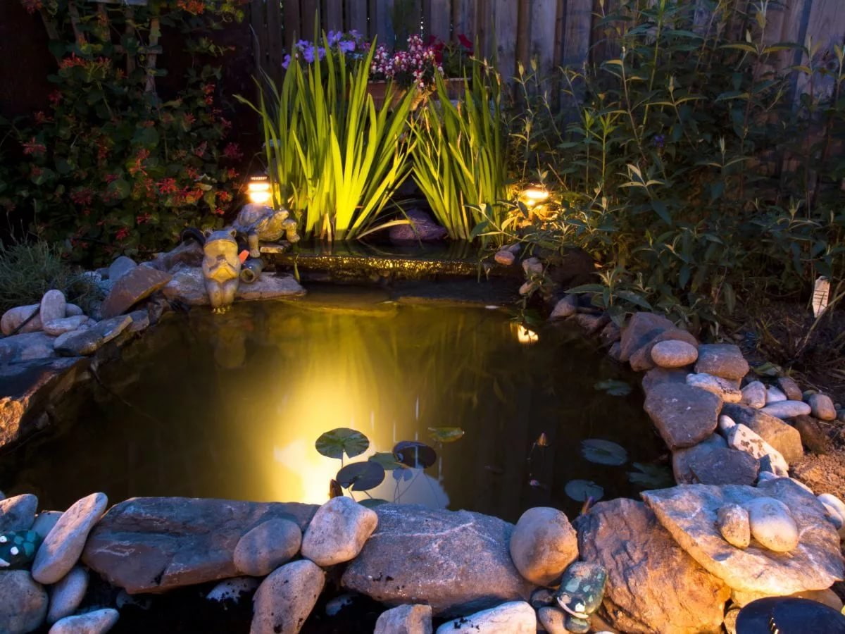 You can highlight the crowns of trees, flowers, paths, shrubs and a pond. Warm light will give a small summer cottage coziness, and cold light will increase the contrast.