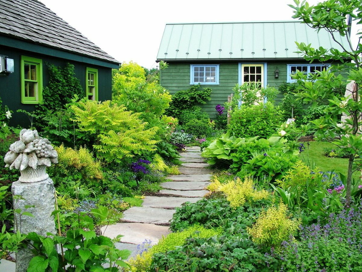 If the path winds, then the journey along it will last longer, which means the site will seem more spacious. To create such an impression, designers often use the following technique: a path leading into dense greenery near the fence creates the illusion that the garden continues beyond the border of the territory.