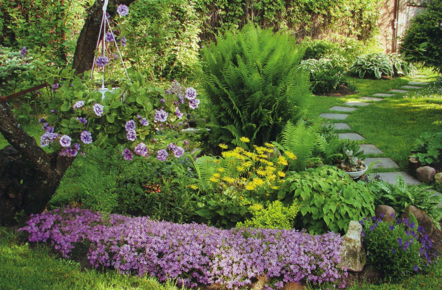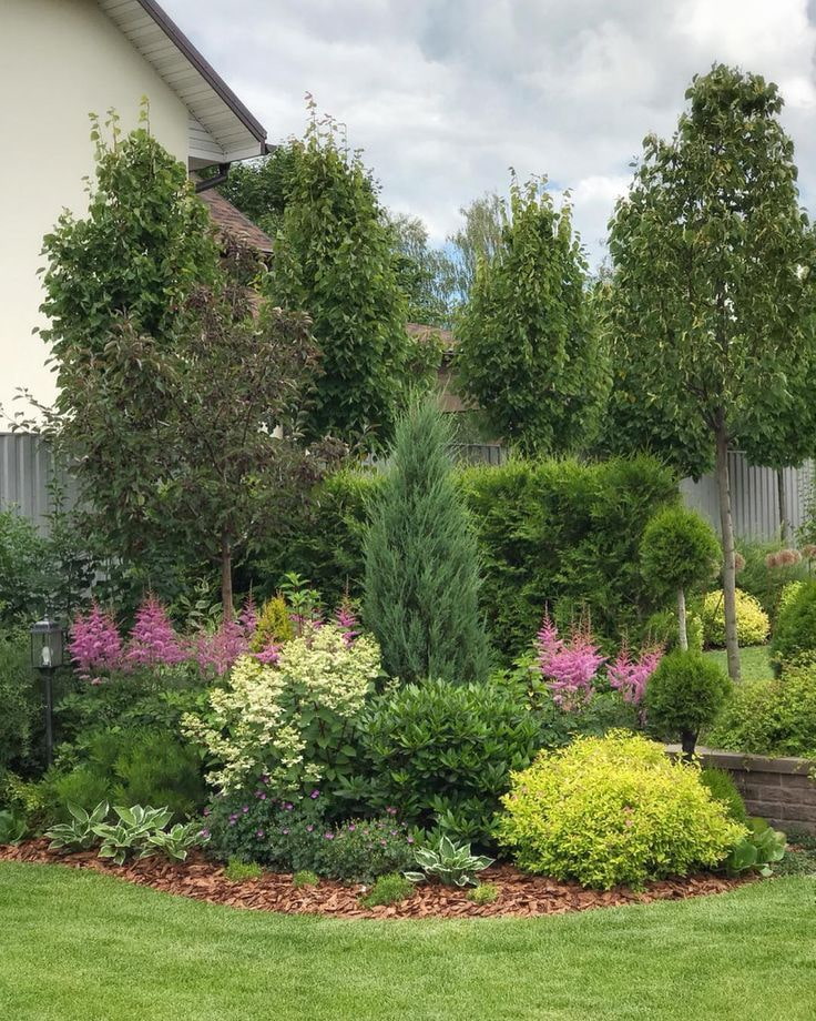 Hosts, bells, ferns, volzhanki are suitable for the lucky owners of plots with a forest landscape. Choose crops that will not look contrasting with pines or other trees near your home.