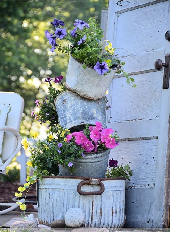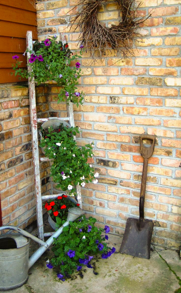 A simple building element can be an unusual decoration for your favorite garden, if you lean it against the wall of a house or a tree and decorate with plants. An old step-ladder is also suitable - it is easier to put a pots on its steps, without thinking about fixing.