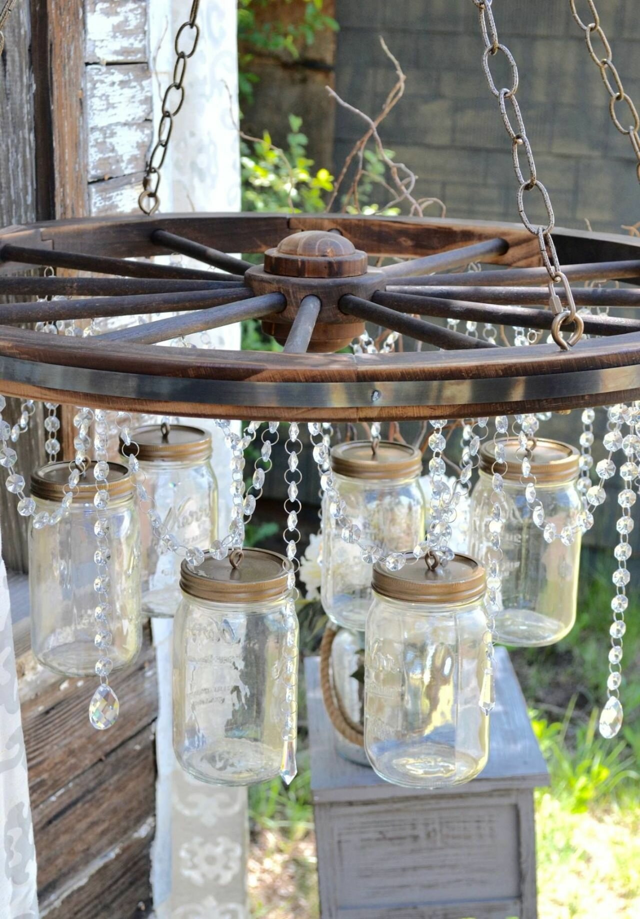 From the wheel, you can build an original garden chandelier by hanging it from a tree, use it in a flower arrangement or add it to a bench. The easiest way to decorate a summer cottage with a wheel - lean it against fence, and plant climbing plants nearby. The product will serve as a decorative lattice for loaches.