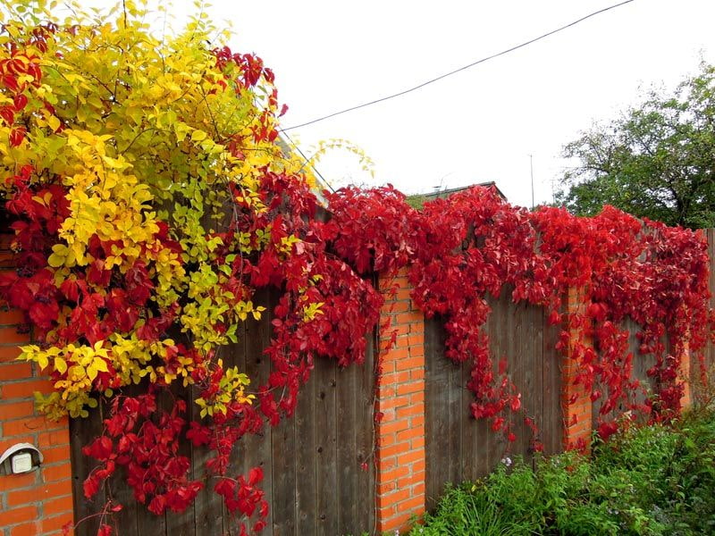 An important nuance is the fence itself. Thin and flimsy will not withstand heavy large vines. Self-clinging plants will not be able to curl on brick - you will have to make garters.