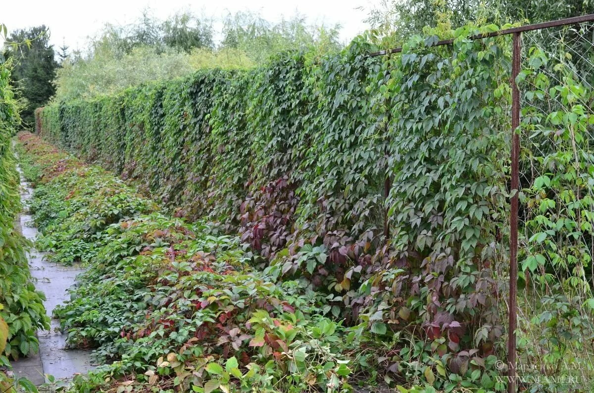 As the name implies, this vine has more than enough strength and desire to live: without control, it will quickly survive other plants from the site and occupy the territory. But with timely pruning, a hedge, even on the basis of a picket fence or a chain-link mesh, looks very decorative.