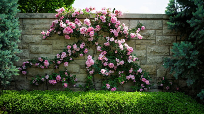 Suitable for experienced flower growers and those who are ready to care for this complex plant. Thorny shoots with flowers require careful handling, timely garter. But if you do everything right, during the flowering period, the site will turn into a real imperial garden. It can hibernate, but in the fall they wrap and cover. Although even such a scenario does not guarantee a successful wintering for a climbing rose.