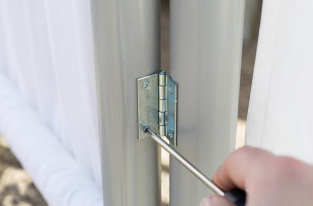 Trying on the third shield, carefully following the front side. The screen should open like an accordion so that it can be folded and unfolded at any angle. We attach the third door with self-tapping screws using hinges.