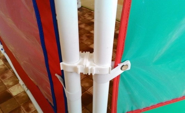 We start draping the walls with our own hands. We calculate their area and sew the fabric from above and below. Velcro, buttons or hinges are also used for connection, which allows you to change the walls depending on your needs. Plastic products are often used in kindergartens for hospital play, puppetry, room zoning, and more. Pockets are sewn onto the walls or windows are cut out.