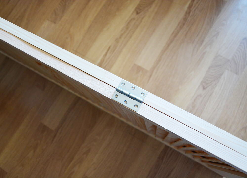 We fasten the bars with screws and corners. By attaching the bar a short distance from the edge, you can make the screen with legs and add wheels that will make the screen more comfortable to use.