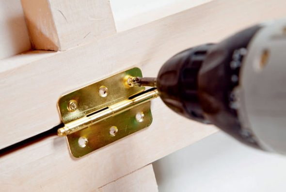 - Trying on the loops. If the doors are high, additional fasteners are installed in the middle.
