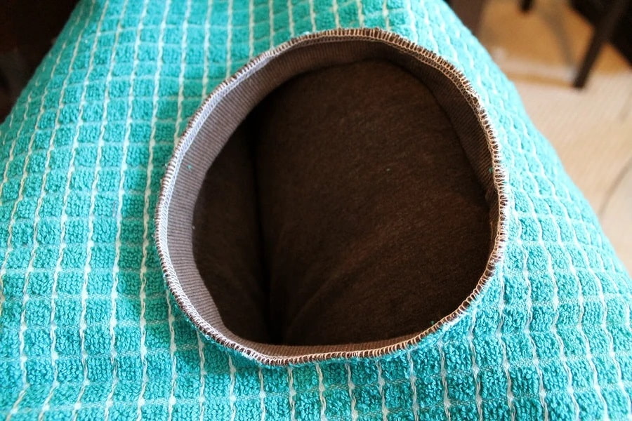 2. Cut a hole in the towel to fit the round piece.