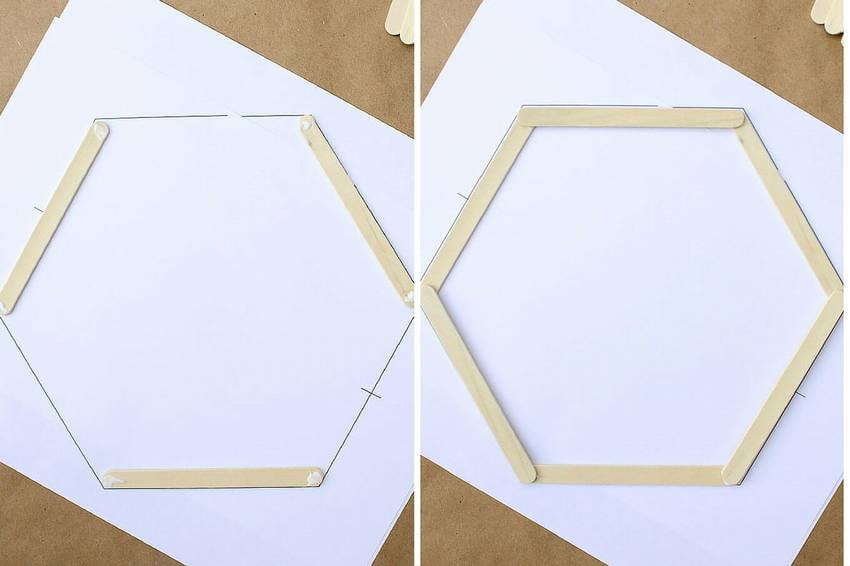 We offer another budget way to create an outstanding hexagonal shelf with your own hands from ice cream sticks.
