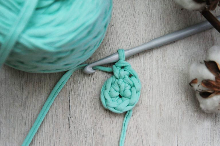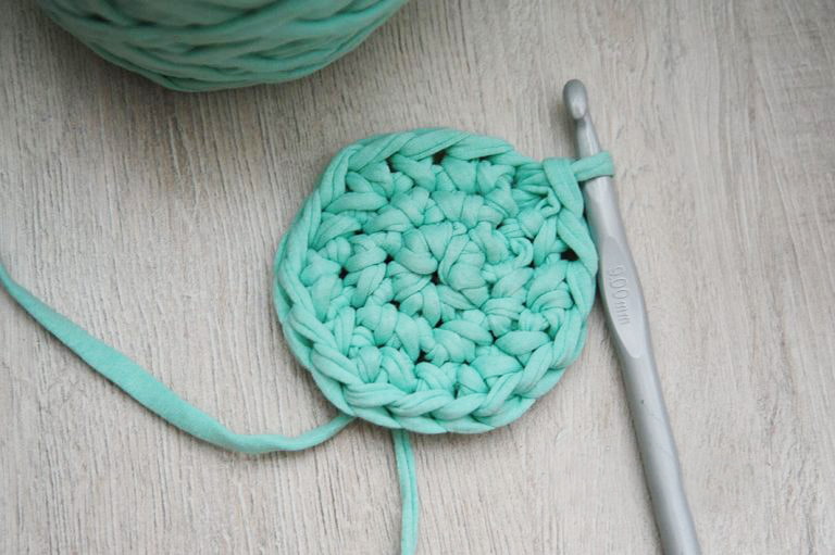 - We repeat the previous steps, but after 4 loops and finish with an air loop. The bottom of the basket is ready, move on to the sides.