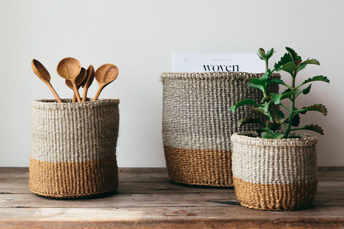 In the photo there are baskets made of twine, which will perfectly fit into the marine or eco-style.
