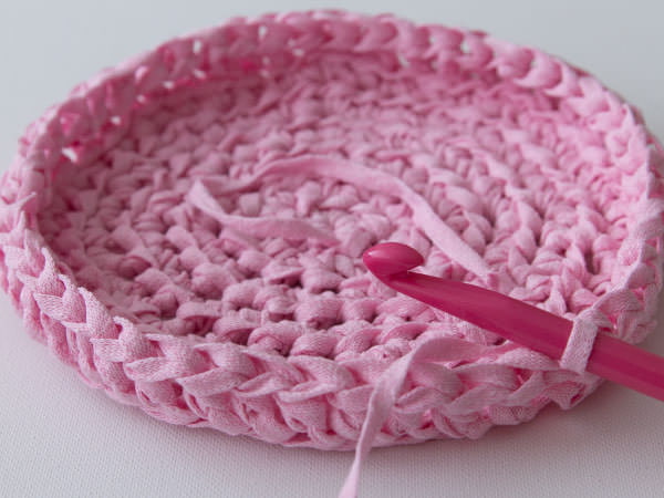 - We proceed to the walls of the basket. To do this, knit with a single crochet under each loop of the previous row. We repeat in a circle to the desired height.