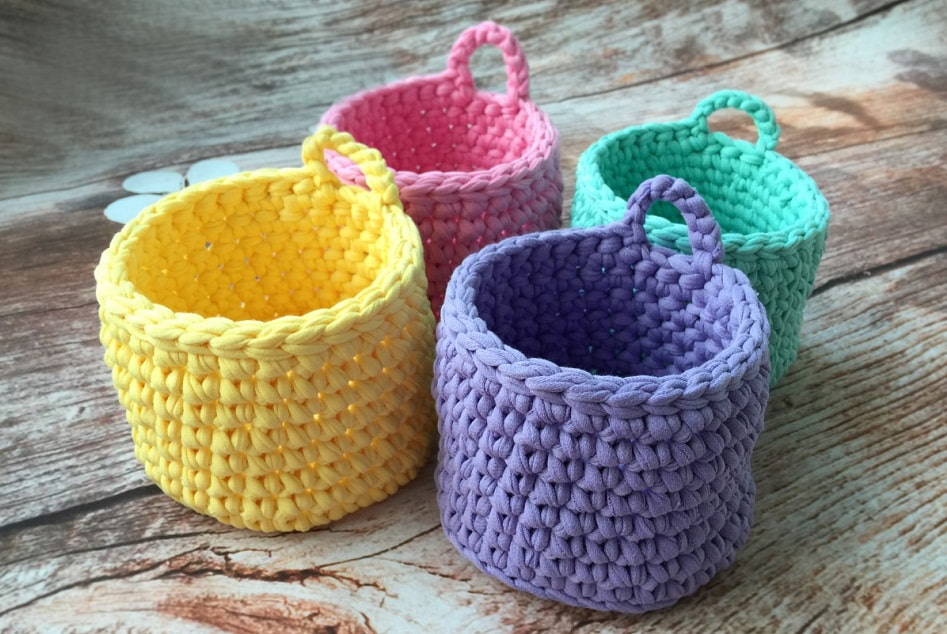 Crochet baskets will find their way into the kitchen and living room. You can put flowers in them, keep magazines or books close at hand. Plus, the thick knit yarn makes it easy to knit a cozy pet nest.
