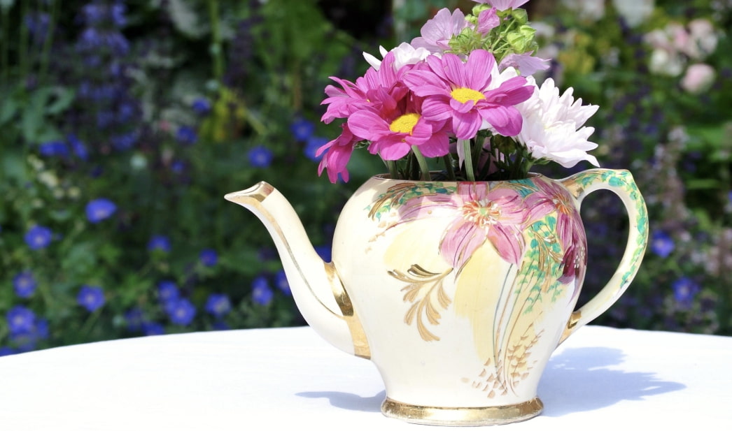 Old teapots, elements of the service, even cans are used as original and new pots for plants. It is advisable to select elements in the same style so that they fit into the overall concept of the room.