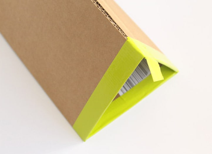 2. Bend the cardboard and connect the edges together, forming a triangle.